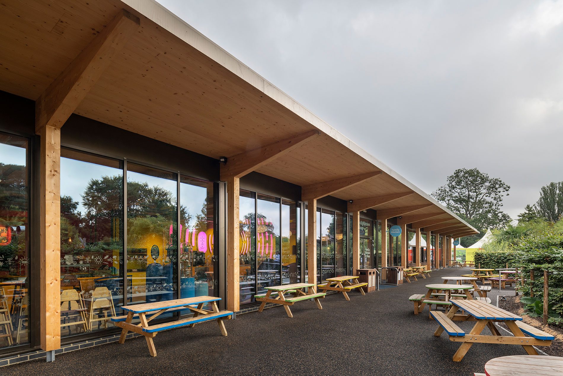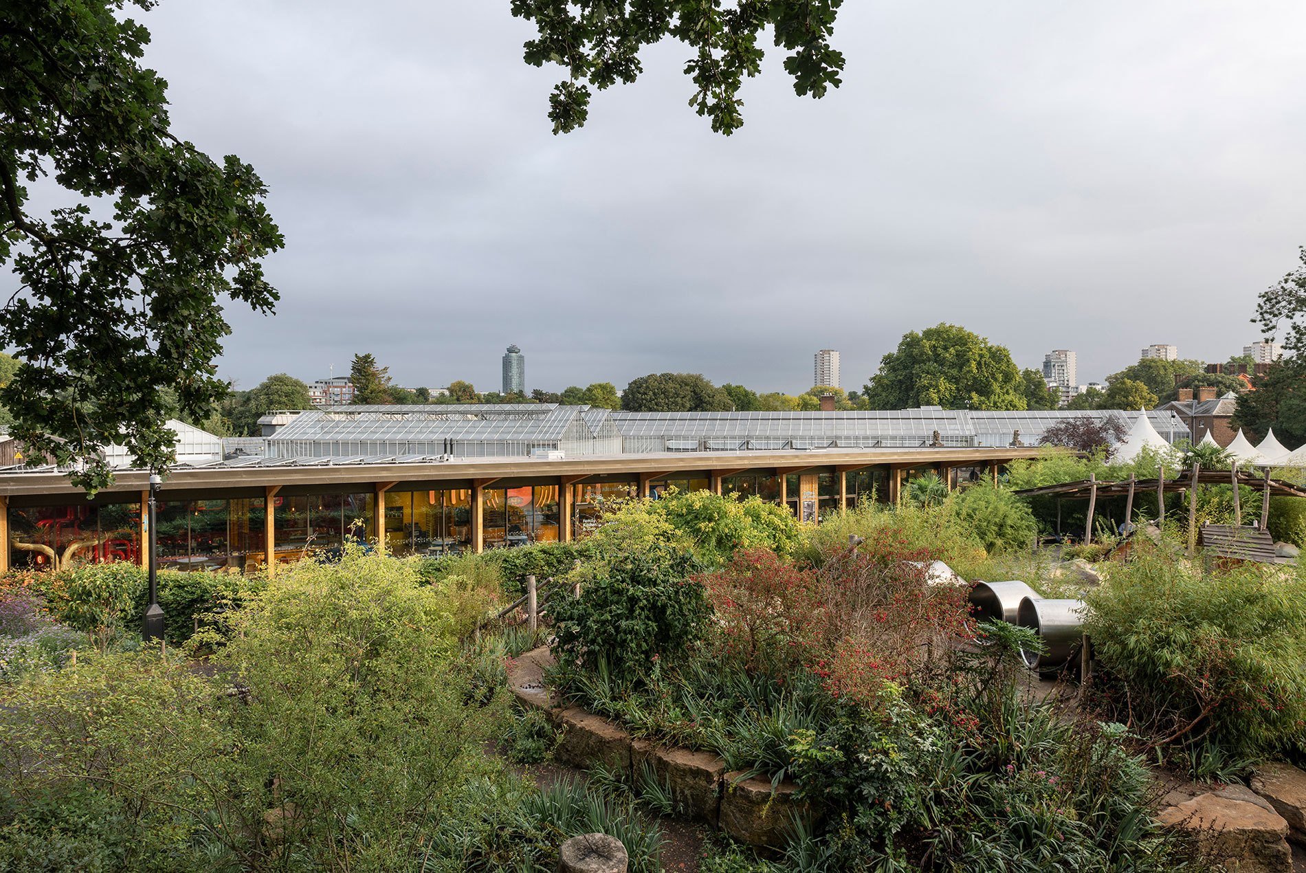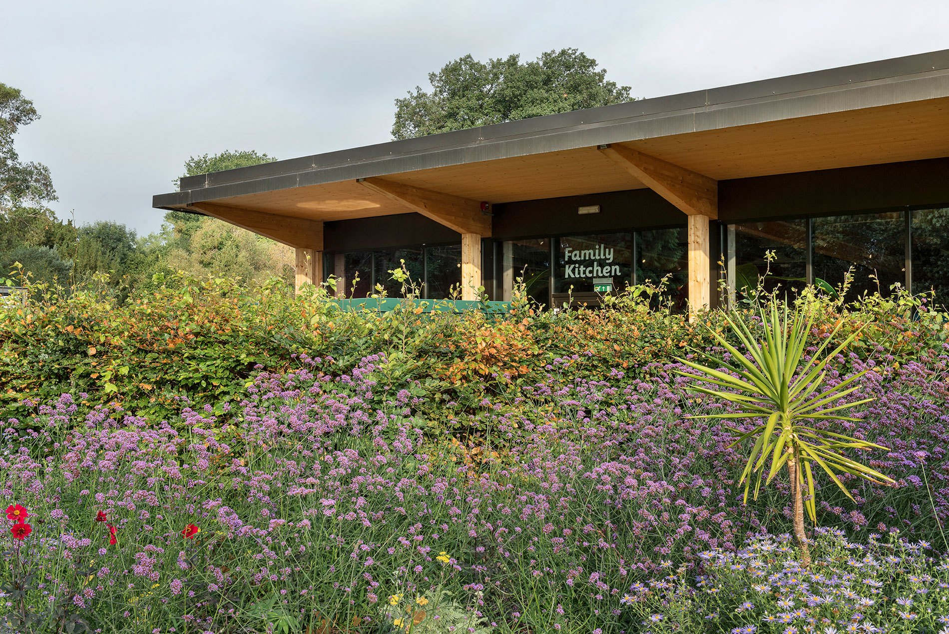 The new Family Kitchen & Shop at the Royal Botanic Gardens, Kew brings a sustainable dining experience to London’s favorite botanical destination. Designed as an extension of the popular Children’s Garden, the restaurant educates families about food, plants and ecology in an interactive way. Wallpaper magazine called it “a real architectural must-visit for the whole family.”